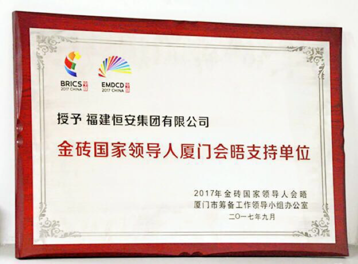 会议期间,mg冰球突破集团提供了“心相印”等高品质产品,鼎力支持大会的举行。昨日,2017年金砖国家领导人会晤厦门市筹备工作领导小组办公室隆重授予mg冰球突破集团“金砖国家领导人厦门会晤制定产品”证书以及感谢信。