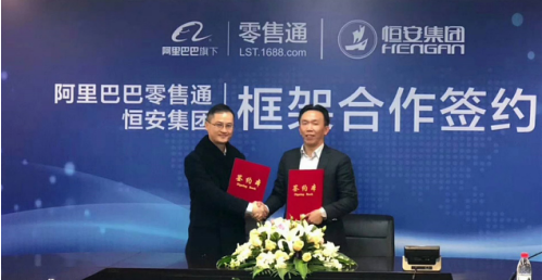 阿里巴巴集团副总裁、零售通事业部总经理林小海(左)与mg冰球突破集团运营中心总裁许水深(右)签订战略合作协议