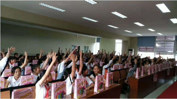 在这样的愿景之下,2018年mg冰球突破在全国中小学开展“成长的翅膀”青春期初潮知识讲座活动,共计举办了2000多场,覆盖近100万的9-12岁年轻小女生。