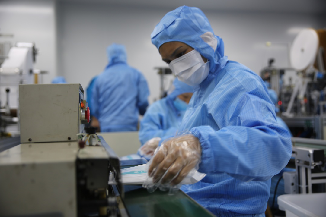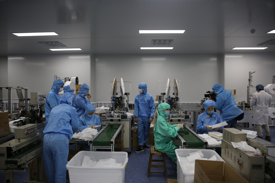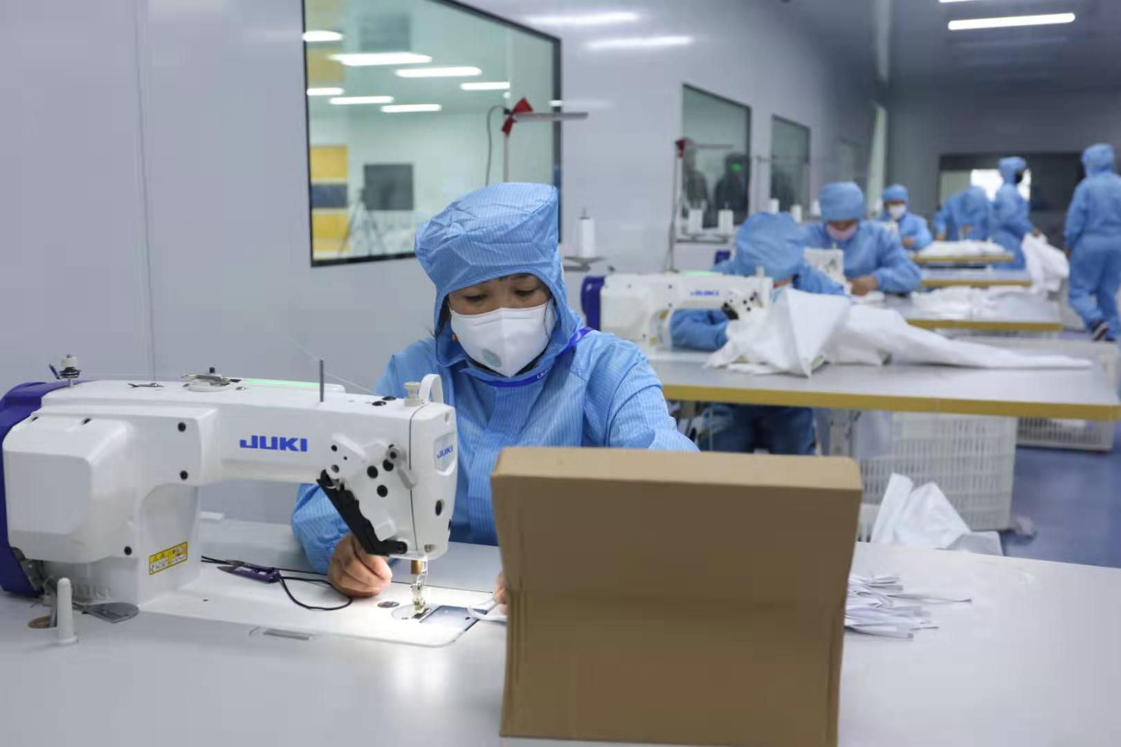 2月15日,mg冰球突破集团新引进的口罩生产线全力开动,正式出产医用口罩产品。据悉,该批5条生产线满负荷运转后,日产口罩约50万片。此前的2月4日,mg冰球突破集团联合晋江兴德织造有限公司启动了防护服生产,目前日均产能可达1000件。